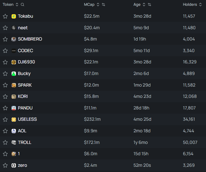 PumpFun + Heaven + Bonk trending tokens for the last 24h: