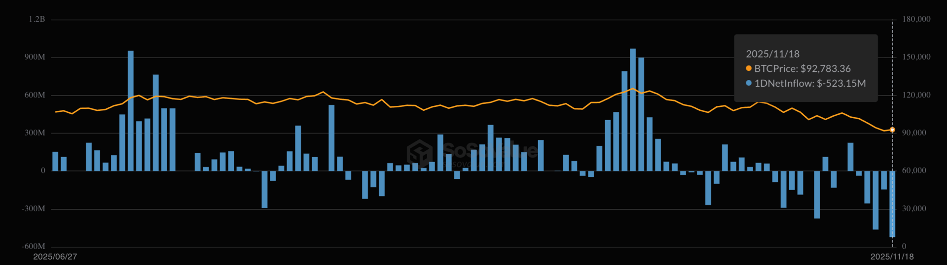 Adding on to the not-so-good news part, BlackRock's iShares Bitcoin Trust (IBIT) registered its largest daily net outflow of $523.15 million yesterday.