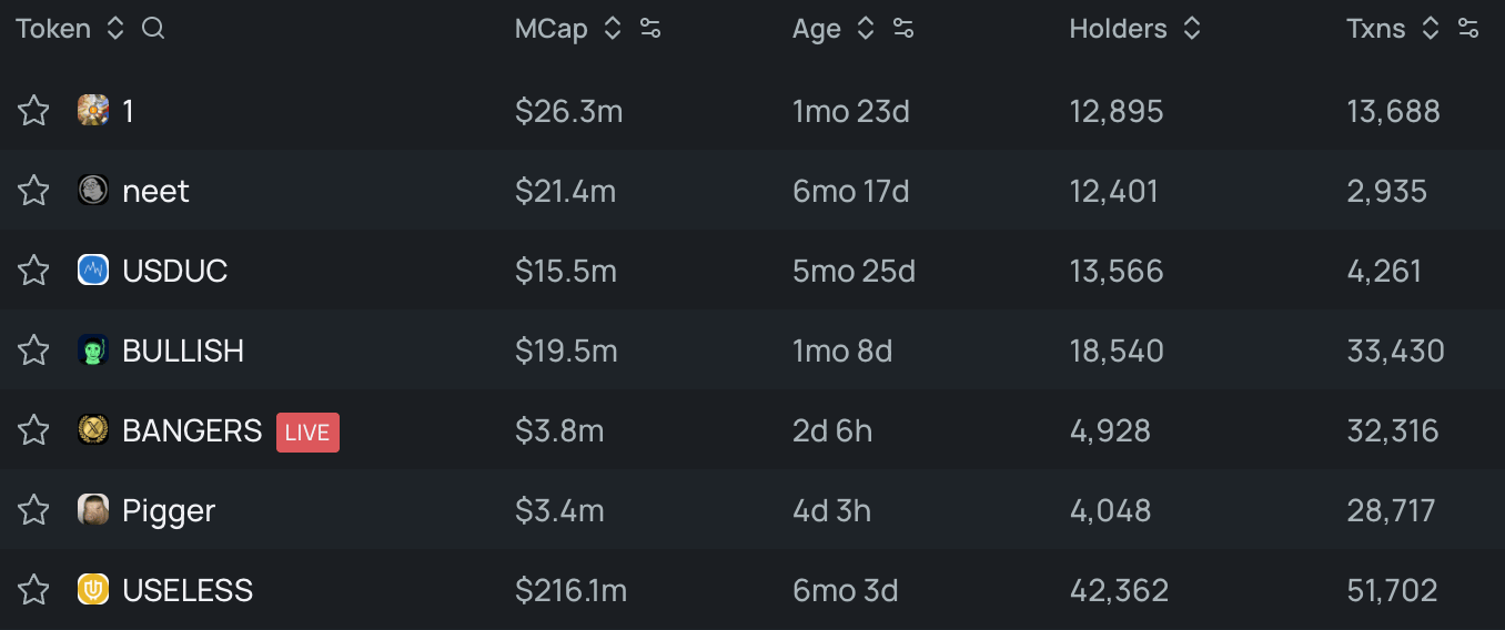 PumpFun + Heaven + Bonk trending tokens for the last 24h: