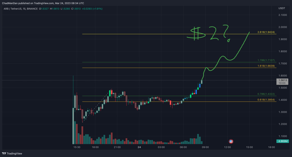 Crypto Twitter is screaming for it and Fibonacci lines are confirming a $2 is possible in the short term.