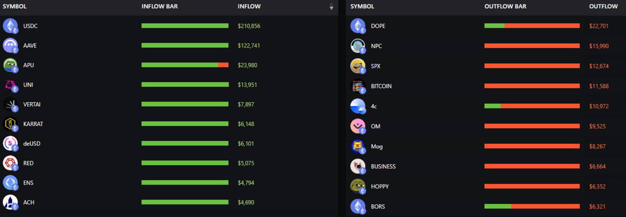Ethereum smart-money movements. Well, USDC to the moon. No meaningful action around these parts yet.