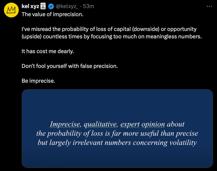 But, being imprecise allows you to see the bigger picture. It frees you from the trap of overconfidence. It helps you remain flexible. When you leave room for ambiguity, you allow yourself to adapt and pivot when things don’t go as planned.