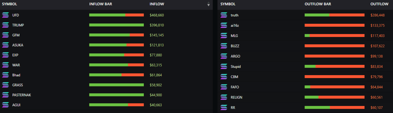 Smart-money movement in and outflows for Solana.