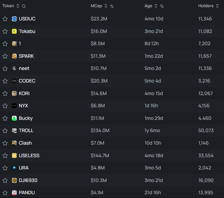 PumpFun + Heaven + Bonk trending tokens for the last 24h: