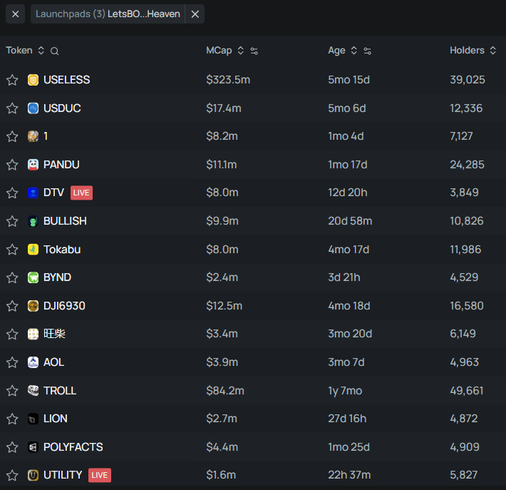 PumpFun + Heaven + Bonk trending tokens for the last 24h: