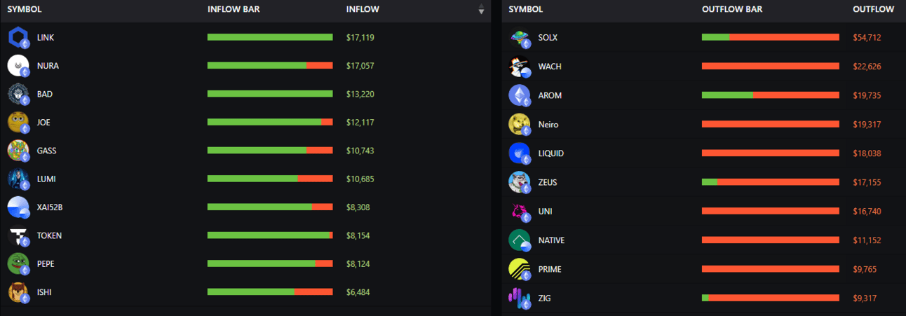 Ethereum smart-money flows (the one that really stands out to me is JOE, I think it will catch up to the likes of MOG and SPX):