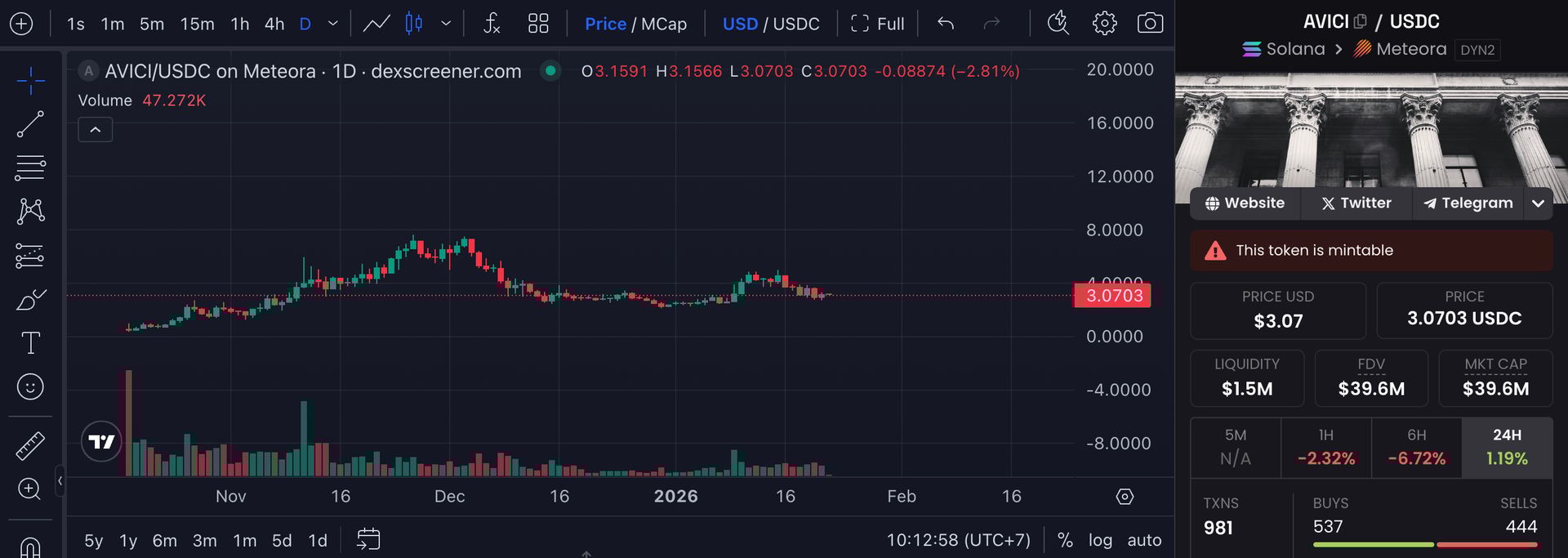Chart-wise, AVICI is consolidating after a pretty epic run, and it's also been hit by the recent tariff drama, like most tokens. Fortunately, as explained above, Trump has played his typical card, and everything should be back on track shortly.