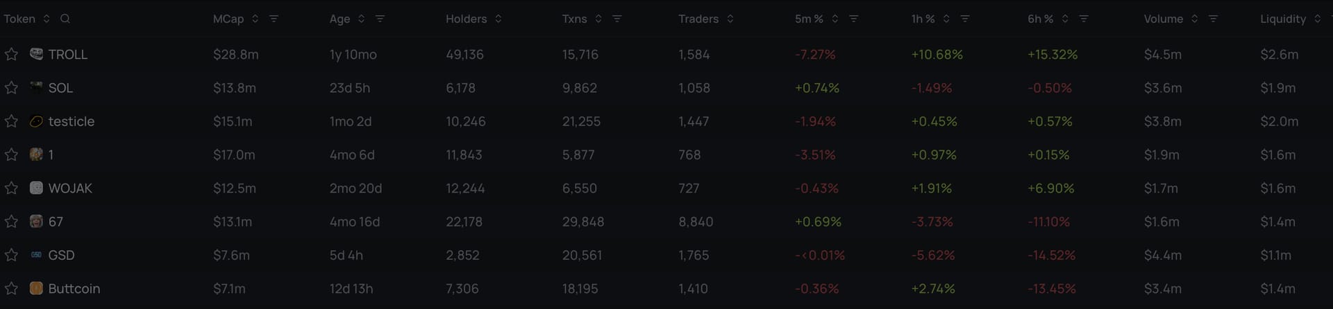 Top trending tokens for the last 24h: