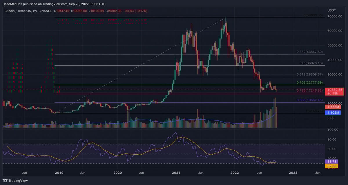 Check out the weekly timeframe volume bars, some of the highest we’ve seen in a very long time as well as testing a key area of support. Looks like something is definitely happening…