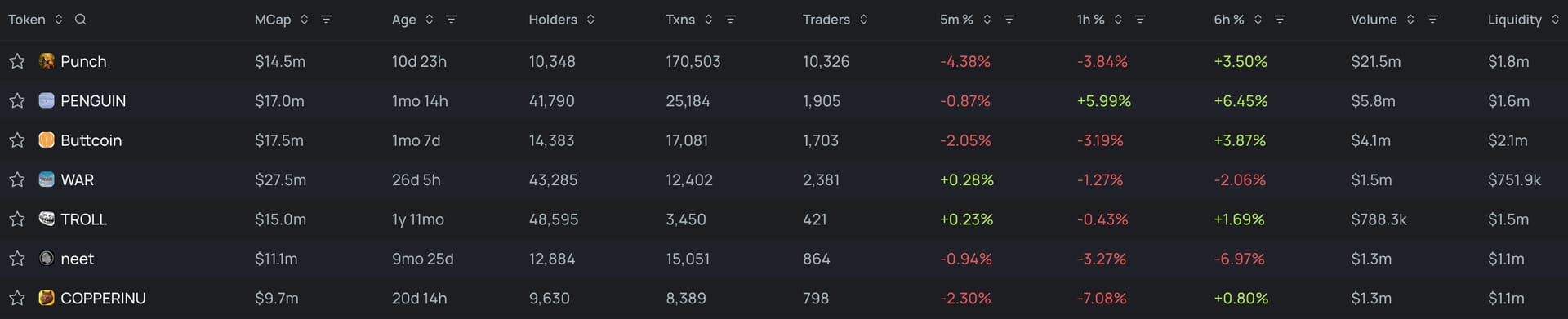 Top trending tokens for the last 24h: