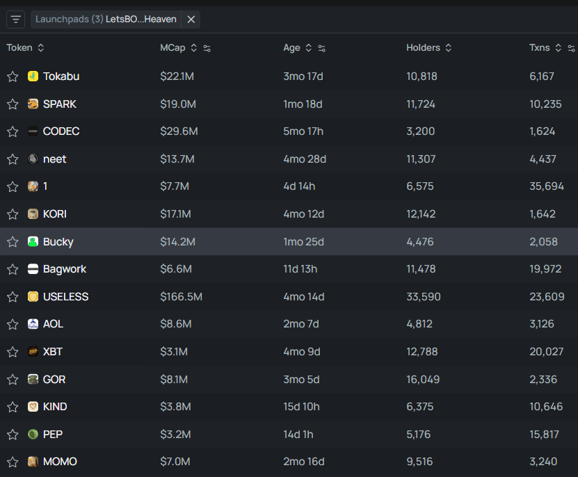 PumpFun + Heaven + Bonk trending tokens for the last 24h: