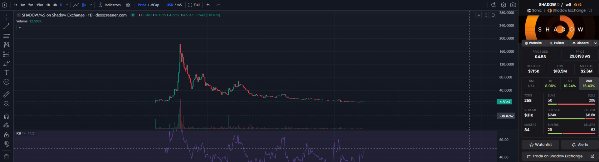 If there ever was a time to put in a bottom on SHADOW, it’s now. The DeFi meta is hot after the UNI fee switch announcement, Sonic is pumping off the lows, and despite the price action, Shadow is killing it on the revenue side.