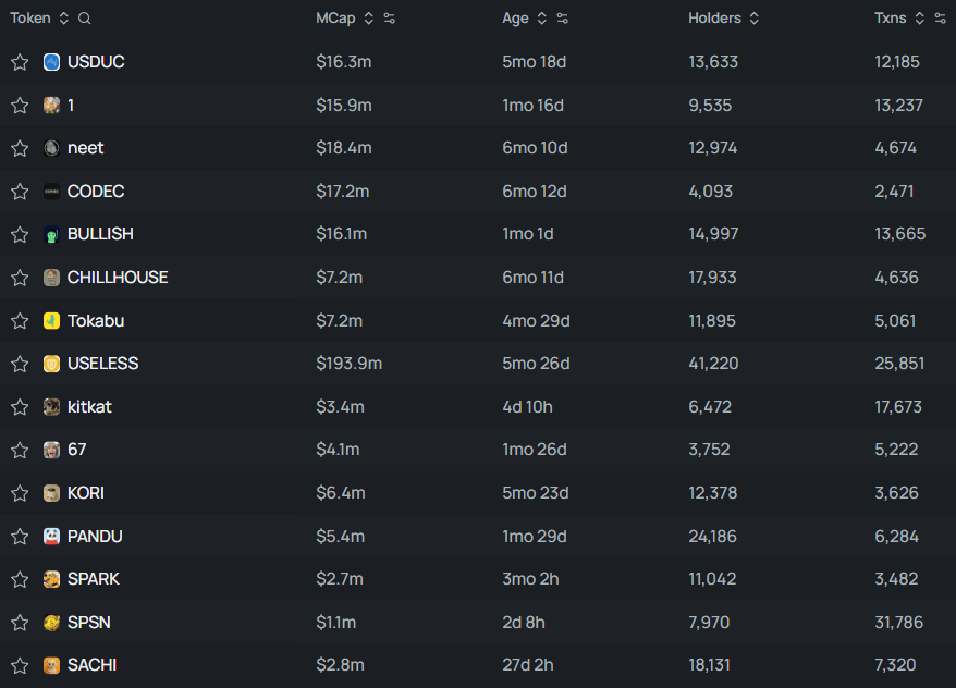 PumpFun + Heaven + Bonk trending tokens for the last 24h:
