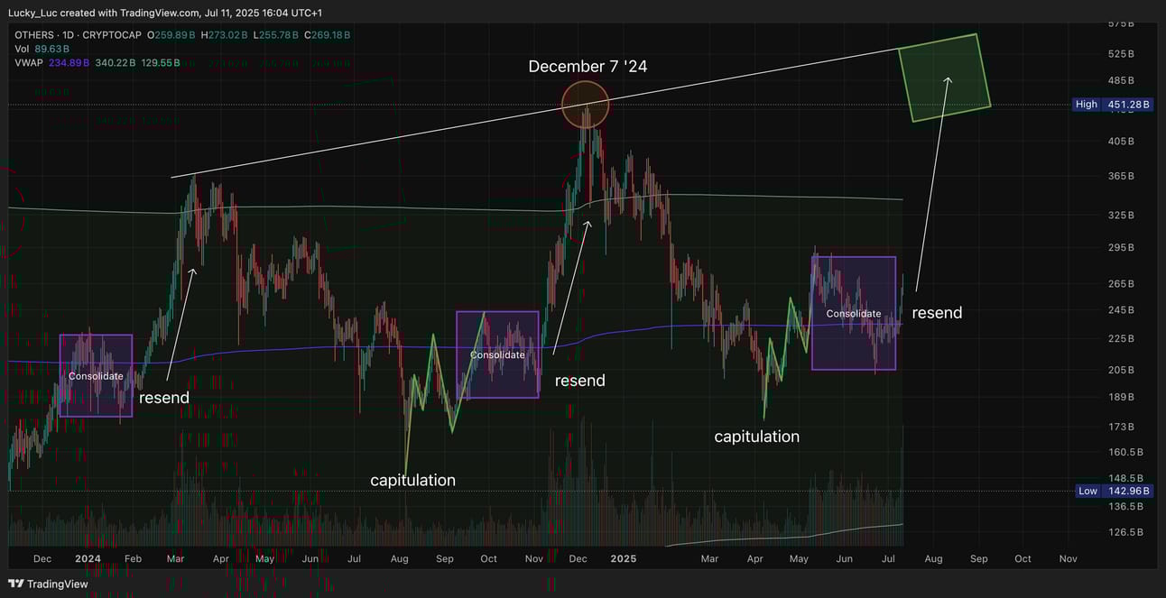 If ETH goes, all the other good altcoins go even harder. I mean, look at the total altcoin market cap chart. There`s still so much bullish potential ahead.