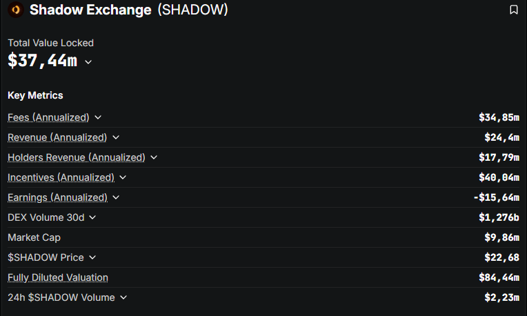 Sonic is here to stay, in my opinion, and Shadow is the main DEX, making around $25m annually during a quiet time, which seems quite undervalued under $10m cap to me.