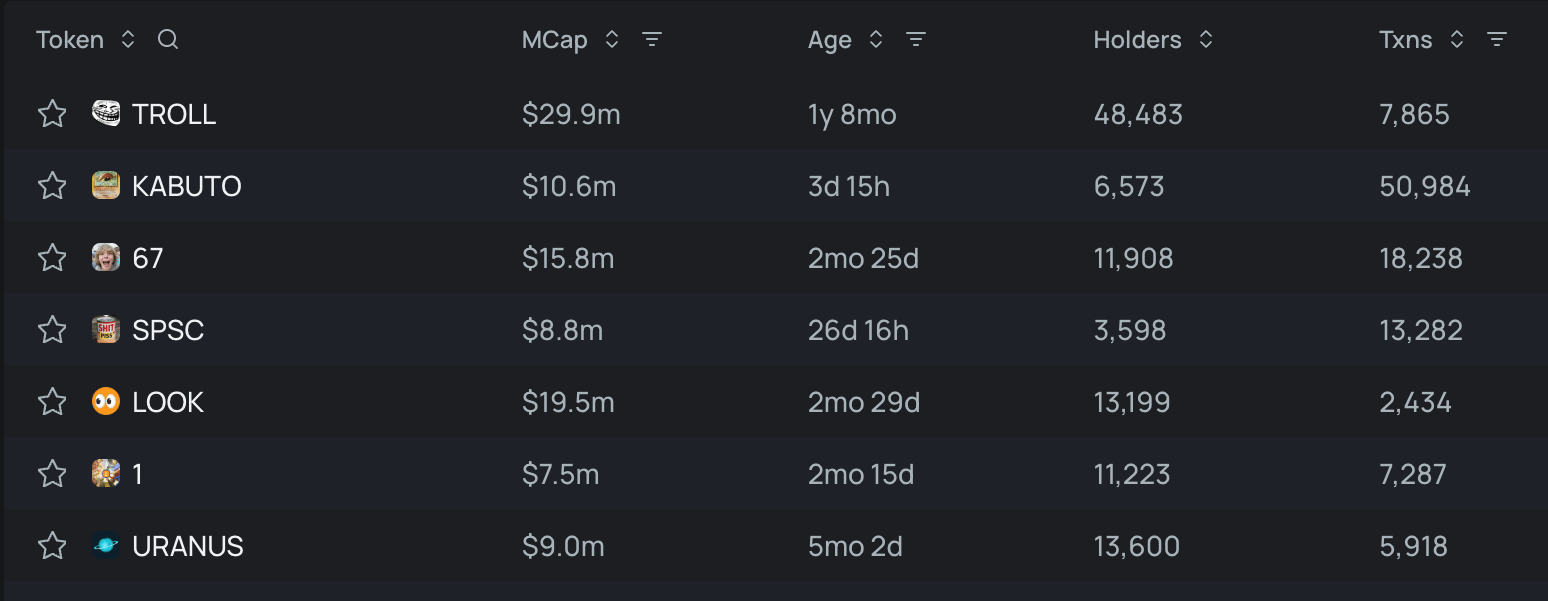 Top trending tokens for the last 24h: