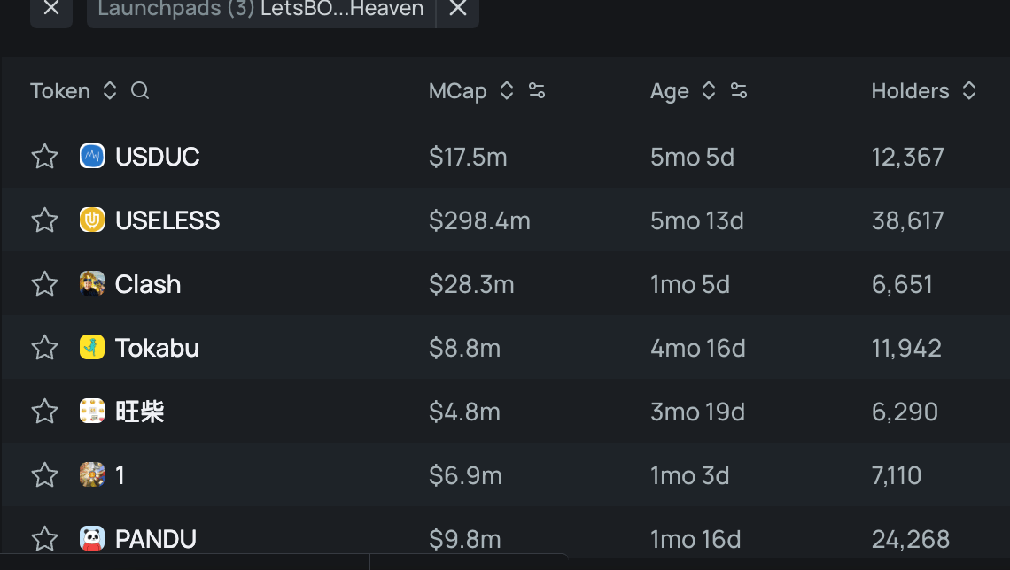 PumpFun + Heaven + Bonk trending tokens for the last 24h: