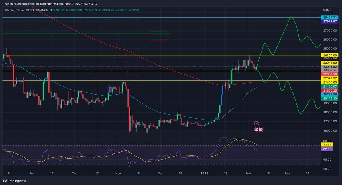 Bull case. Hold strong in this area and watch as the Bitcoin bulls make a play to the upside for Valentine's Day back up to the $24,200 zone. Break that and the sky is the limit.