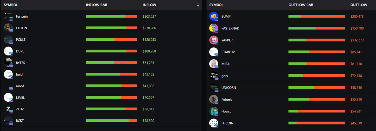 Solana smart-money flows continue to prefer rising hot air combined with a new set of Believe launches, which gather some significant volume currently.