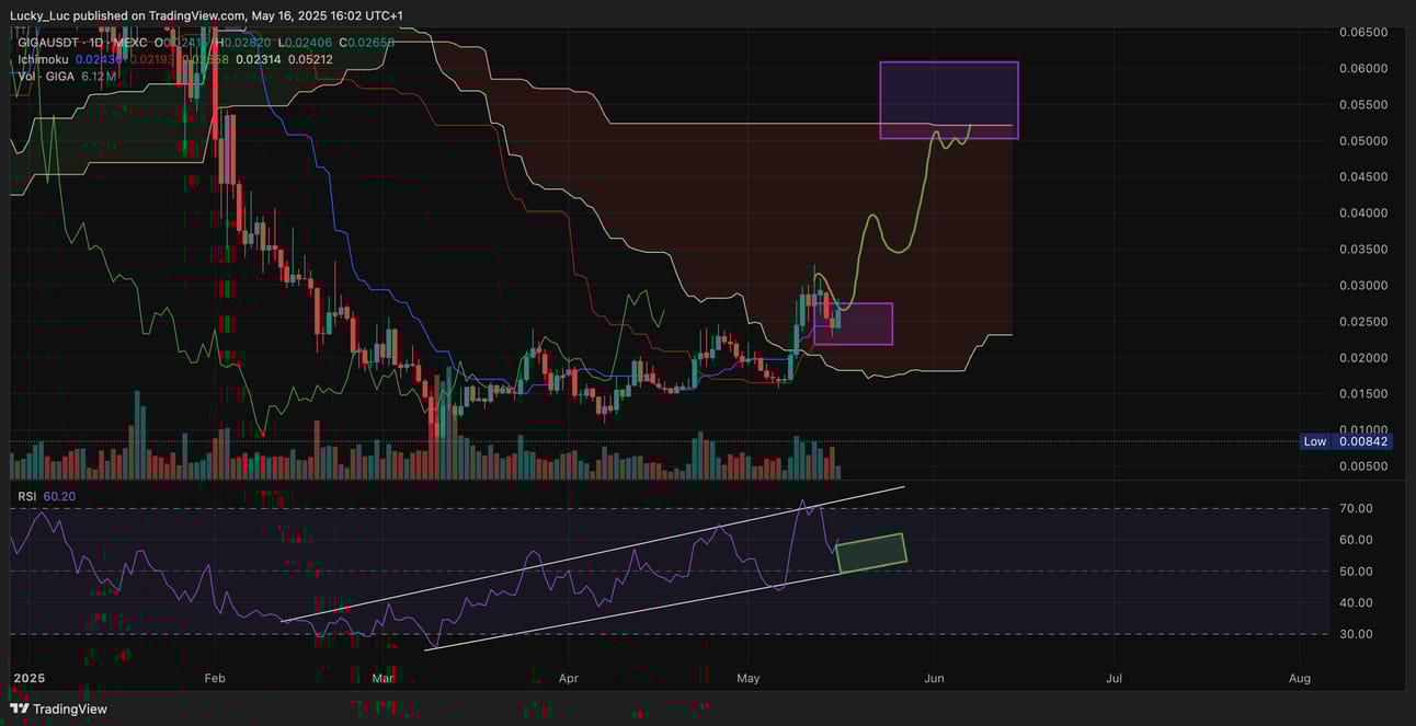 This GIGA squiggle is tracking, and the setup is in my buy zone. It’s the strongest Muradcoin reversal setup I’m seeing right now. I’ve used the Mexc chart for the price history, but this is also listed on Coinbase.
