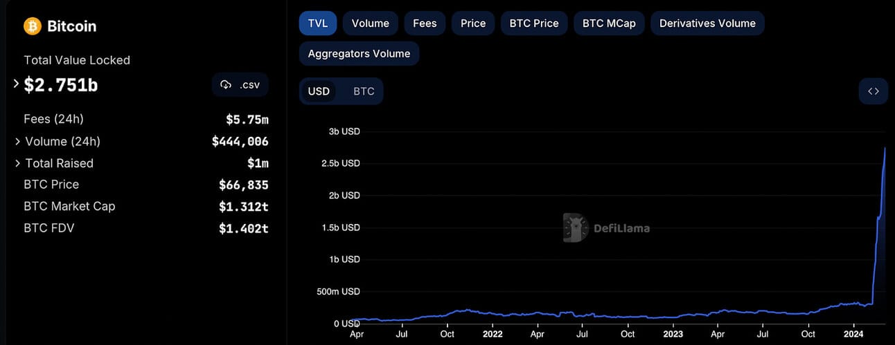 $BTC TVL is up over 800% month on month. Why? I asked the same question.